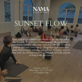 Flow with the rhythm of your breath as the sun dips below the horizon. This Vinyasa-based practice blends dynamic movement, mindful transitions, and deep stretches to release tension and reset your energy. As golden light fades into dusk, find strength, softness, and stillness. A perfect way to close your day feeling balanced, grounded, and fully present in both body and mind.