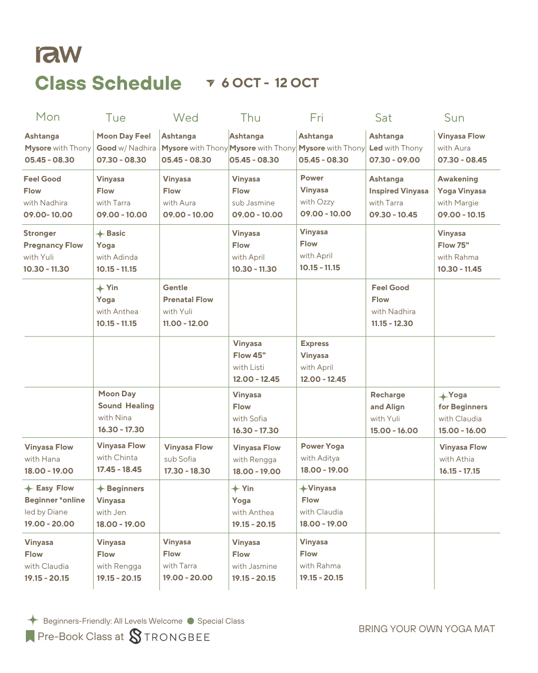 Bring your own Yoga Mat or rent at 50k. Please reschedule minimal 48 hours before class start.