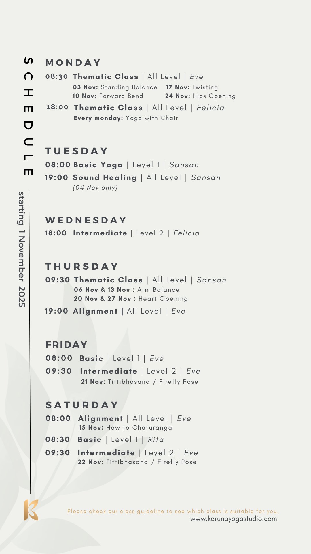 Karuna Yoga Studio was founded in 2019 at the heart of Gading Serpong (Tangerang). Karuna has grown into more than just a yoga studio; it’s a sanctuary for those seeking respite from the relentless pace of modern life. In a world that can be both physically and mentally demanding, Karuna offers a space to pause, reflect, and reconnect.