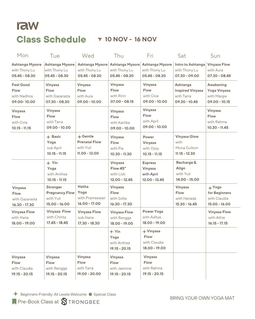 This package includes access to ourregular classes but excludes Ashtanga Mysore, Intro to Ashtanga, and special classes.